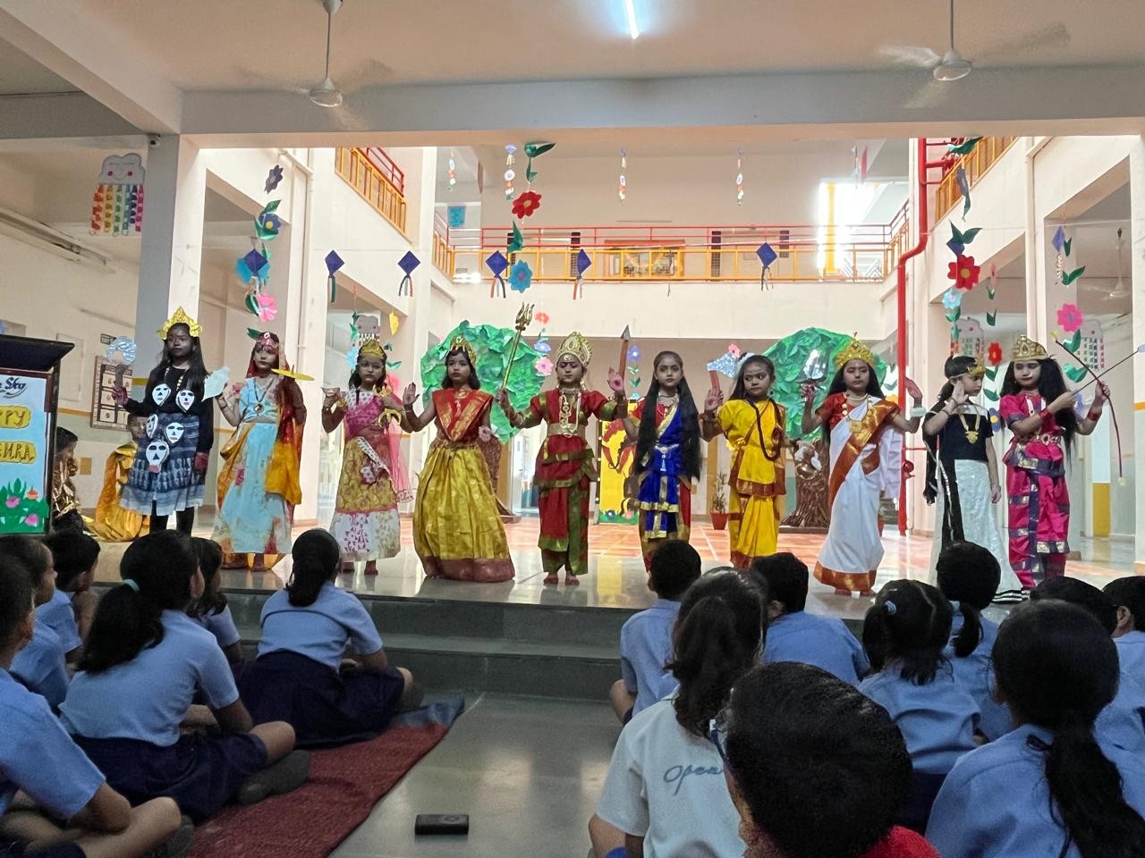 The vibrant festival of Dussehra, symbolizing the triumph of good over evil, was joyfully celebrated by the Tiny tots of Open Sky School with great enthusiasm and excitement.