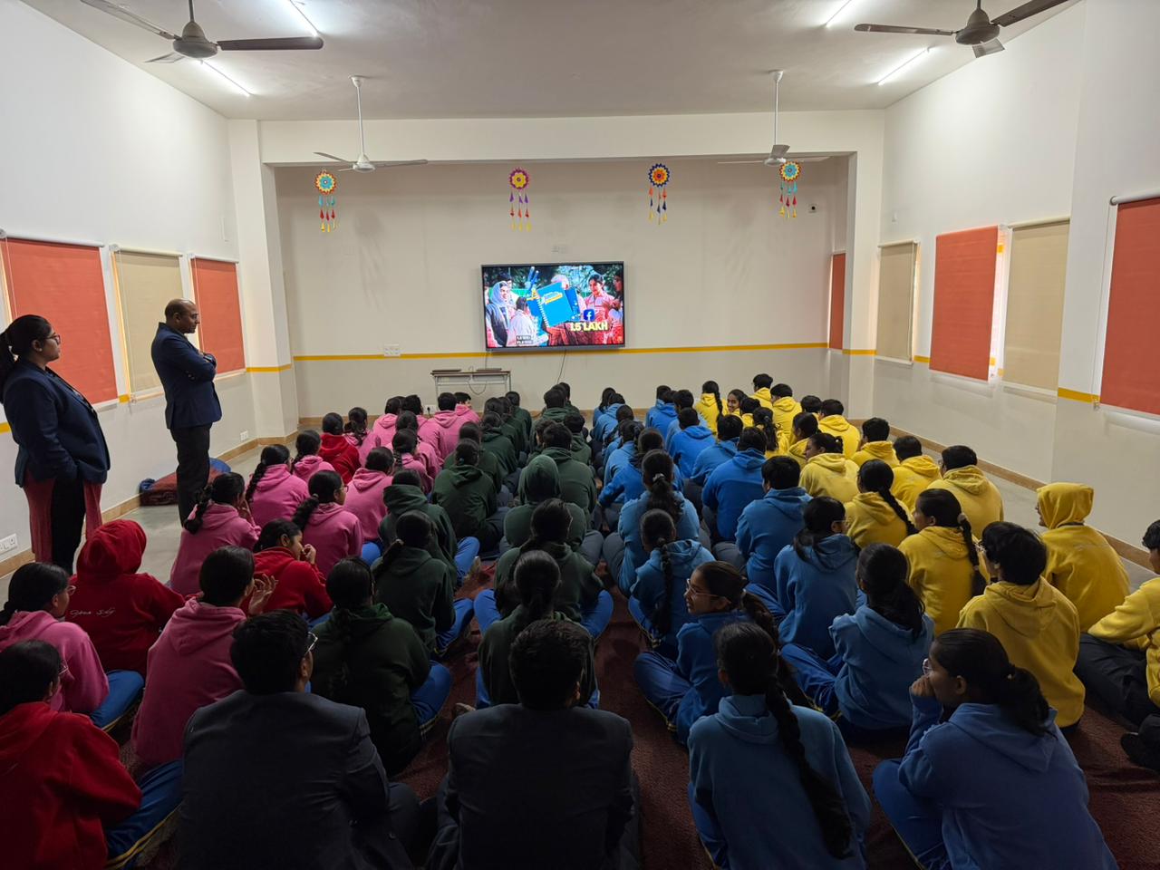 A live screening of Pariksha Pe Charcha 2026 Part-1 was organised in the school to promote a positive attitude towards examinations. Students of Classes VIII and IX attended the session with teachers, while Class X students watched it online through a shared YouTube link. The interaction with the Hon’ble Prime Minister generated great enthusiasm among students.