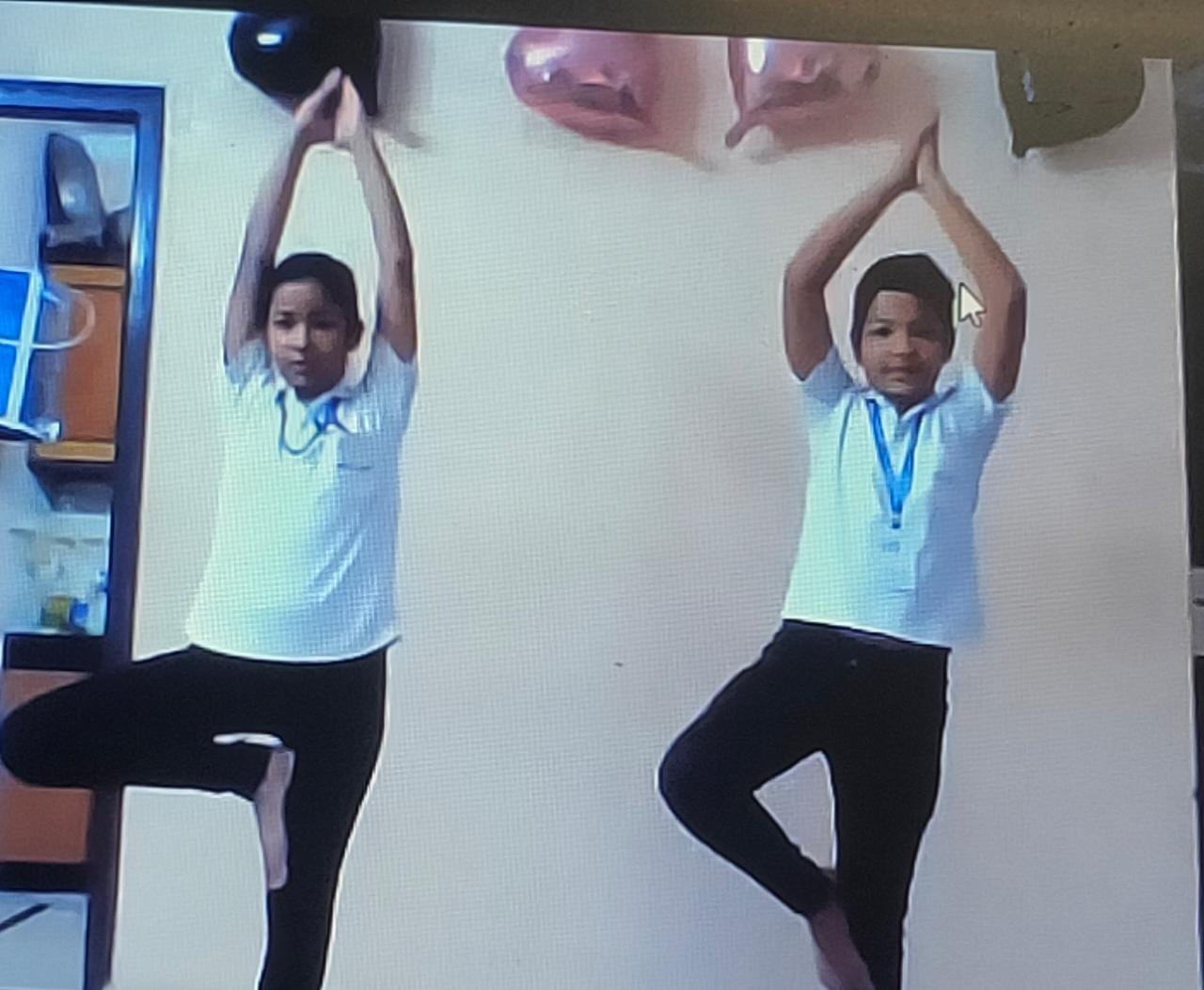 Open Sky Celebrated International Yoga Day with Virtual Unity and Serenity The students of Open Sky embraced a virtual celebration of International Yoga Day on 21 st June, 2023 uniting through screens to promote physical and mental well-being. With creativity and adaptability, Open Sky organized an engaging event that allowed students to experience the transformative power of yoga from the comfort of their own homes. The virtual gathering commenced with a brief introduction about the benefits of yoga. Led by sports instructor and yoga club members, the virtual yoga session began with warm up exercises and gentle stretching exercises to release any tension. Students were then guided through a series of asanas (poses), carefuny designed to promote strength, flexibility, and balance. The instructors provided clear instructions ensuring that students of all skill levels could participate and benefit from the practice. The guided meditation portion of the session allowed students to connect with their inner selves, cultivating a sense of calm and focus. The event conciuded with students encouraged to continue incorporating the principles of yoga into their daily lives.
