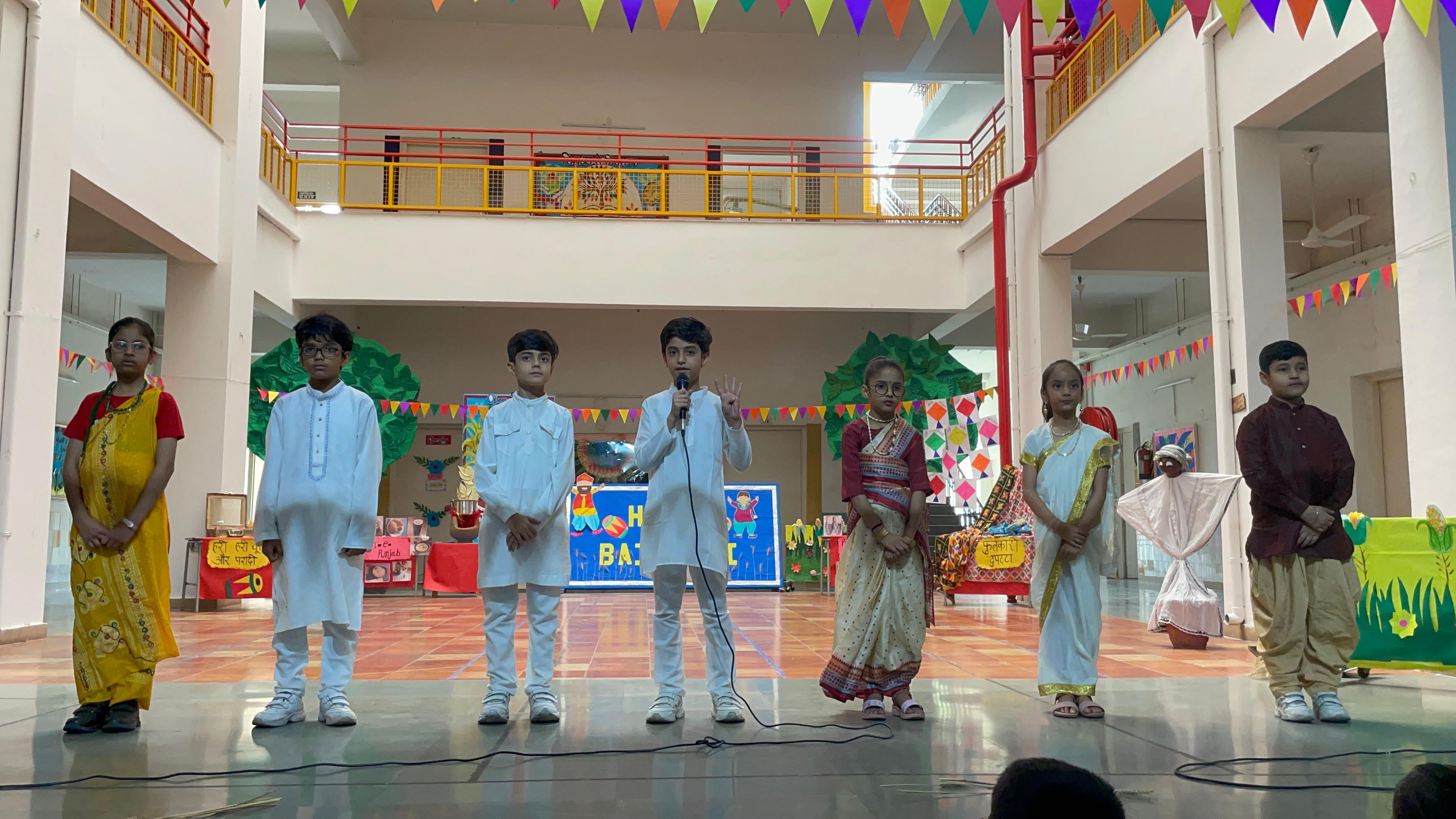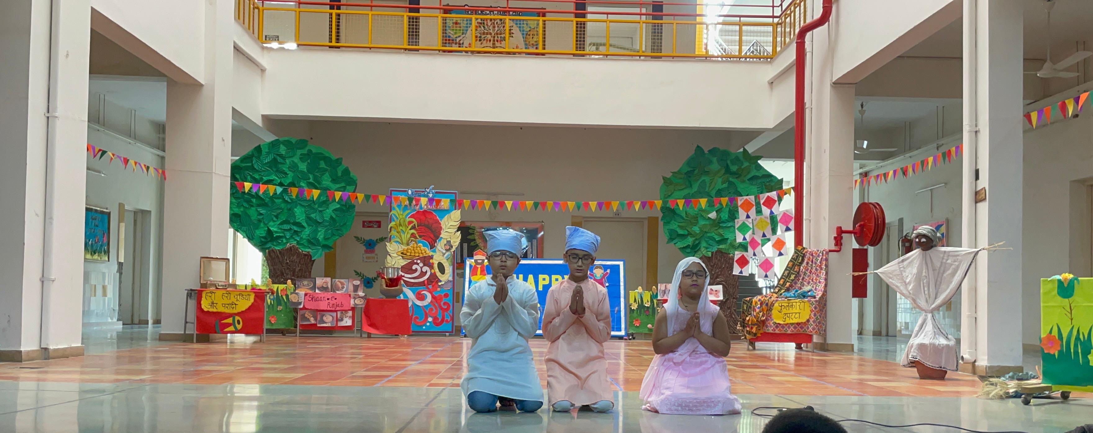 Open Sky School celebrated Baisakhi on 11th April with great enthusiasm. The event began with a skit depicting the formation of Khalsa by Guru Gobind Singh Ji, highlighting its historical and spiritual importance. Students also showcased how Baisakhi is celebrated across India as Pohela Boishakh in West Bengal, Rongali Bihu in Assam, and Vishu in Kerala — marking regional New Years with joy and devotion.